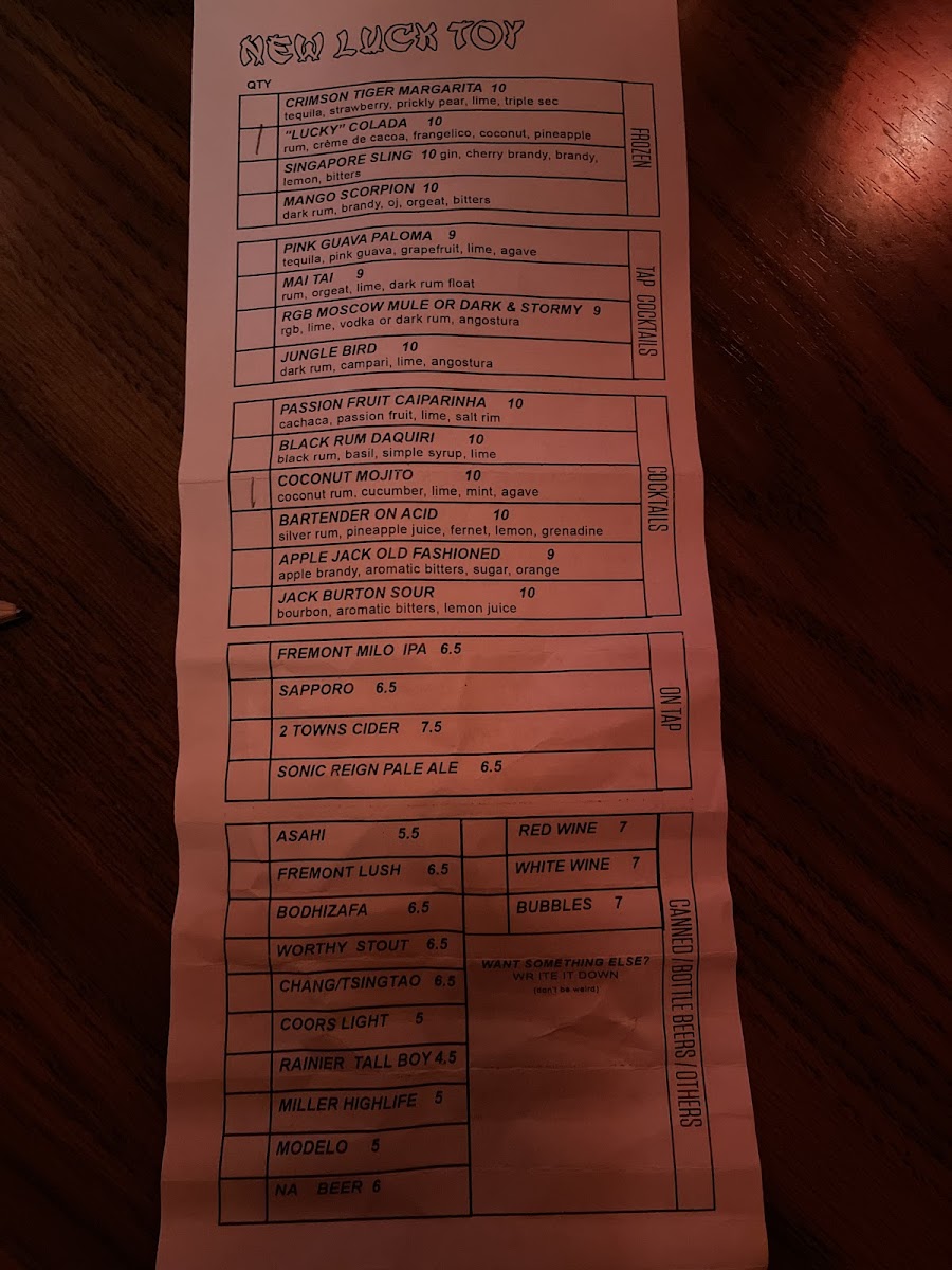 Welcome to New Luck Toy, a vibrant bar nestled in Seattle's West Seattle neighborhood. This unique spot offers an eclectic menu that artfully blends classic Chinese-American flavors with a modern twist.